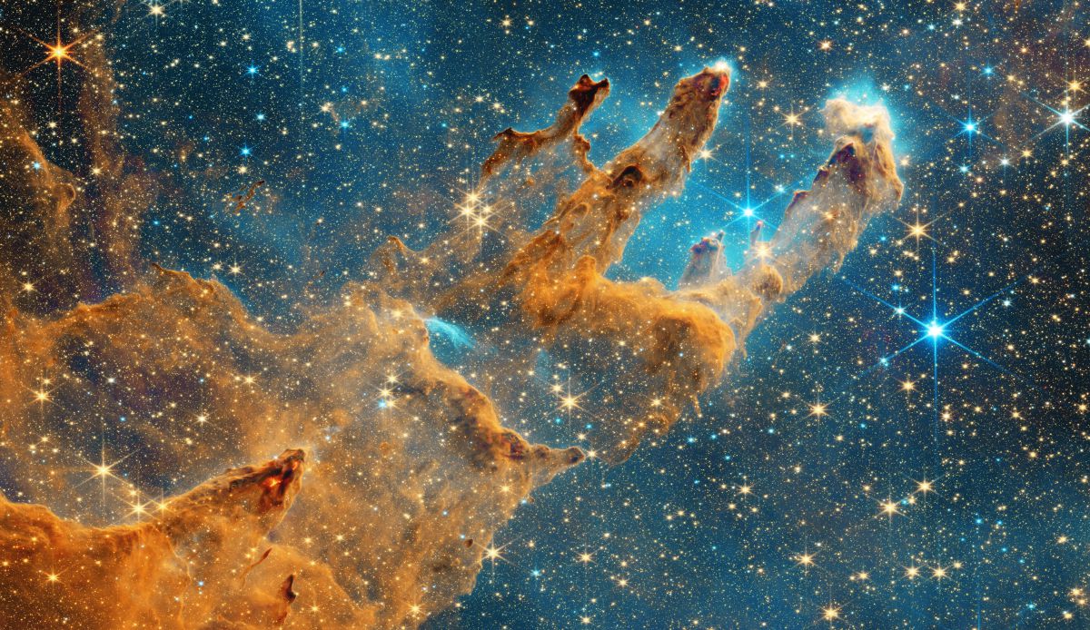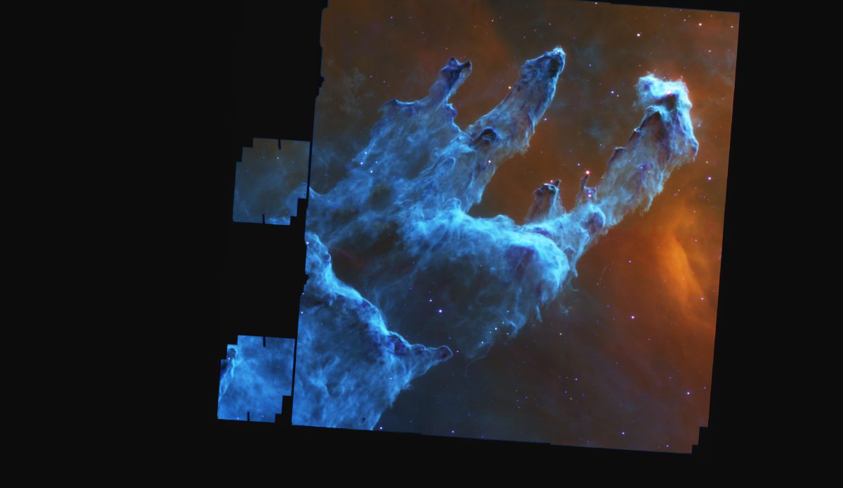 Opazovanja v infrardeči svetlobi z vesoljskim teleskopom James Webb Space Telescope so razkrila še več podrobnosti o notranjosti teh stebrov. Ker infrardeča svetloba lažje prodira skozi prah, so astronomi lahko zaznali številne mlade protostele in curke plina, ki jih izmetavajo novonastajajoče zvezde. Ti curki, imenovani Herbig-Haro objekti, nastanejo, ko snov iz okolice pada na mlado zvezdo in se del materiala izstreli nazaj v prostor z velikimi hitrostmi, pogosto več sto kilometrov na sekundo.